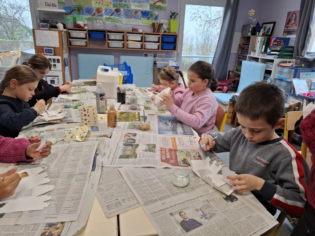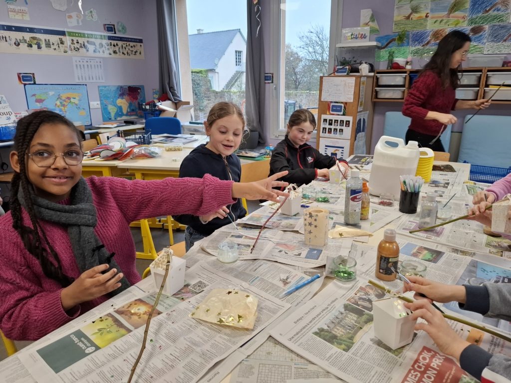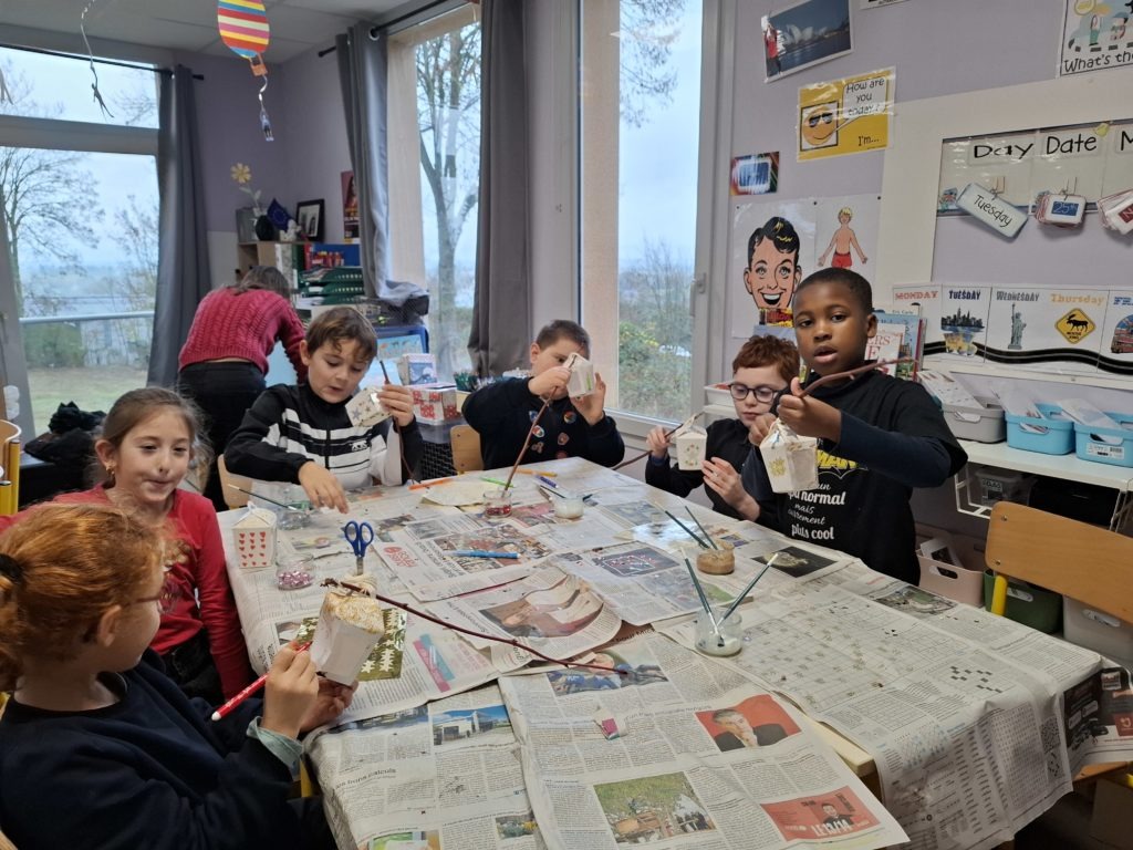 Jeudi 27 novembre, des parents sont venus nous rejoindre pour nous aider à confectionner des lampions pour la fête des Lumières. Les élèves ont appris à plier et mettre en valeur leur bricolage. Ils ont également décorer leur école en préparant la crèche dans la cour. Ils ont aussi pu préparer leur petit cadeau de Noël pour leurs parents.
