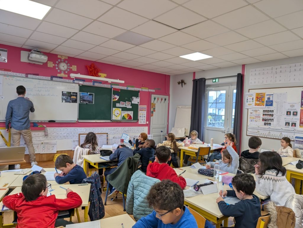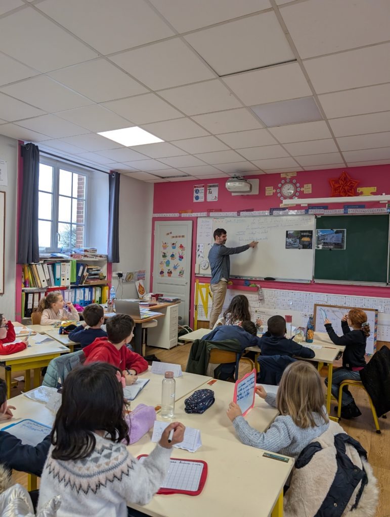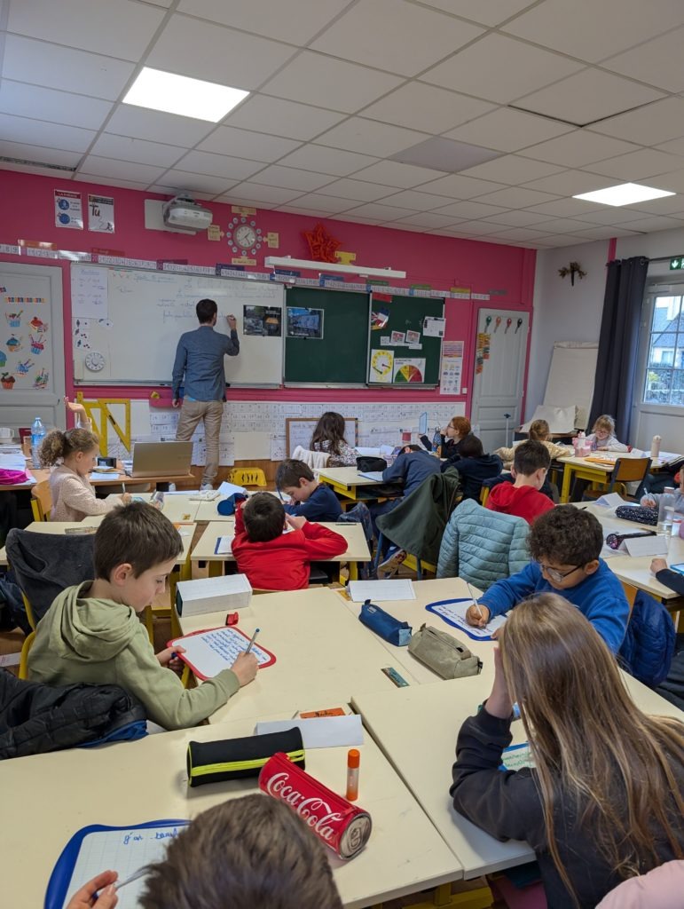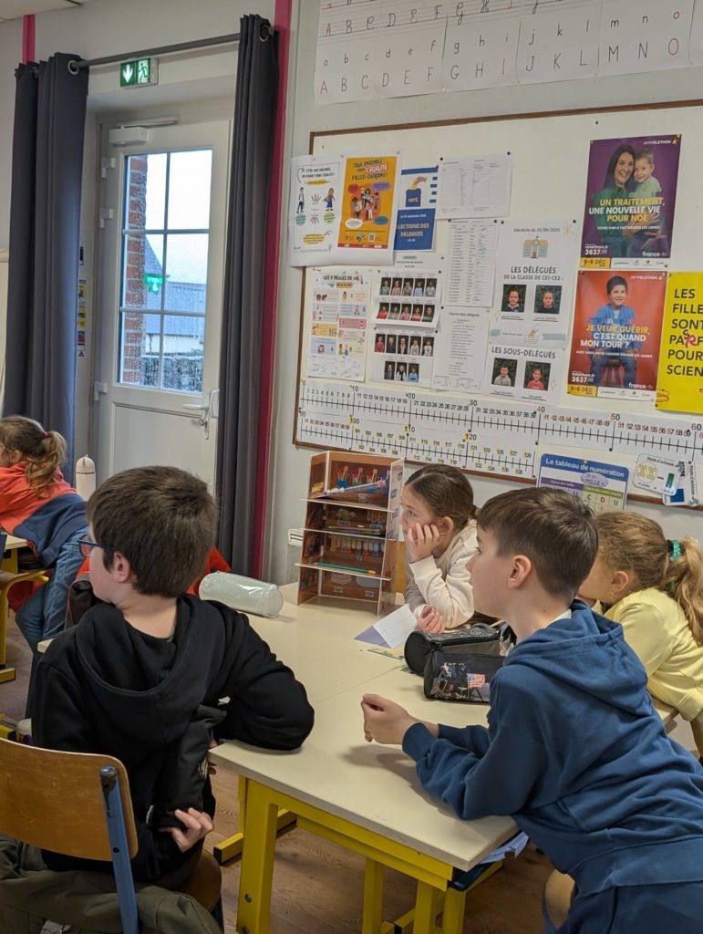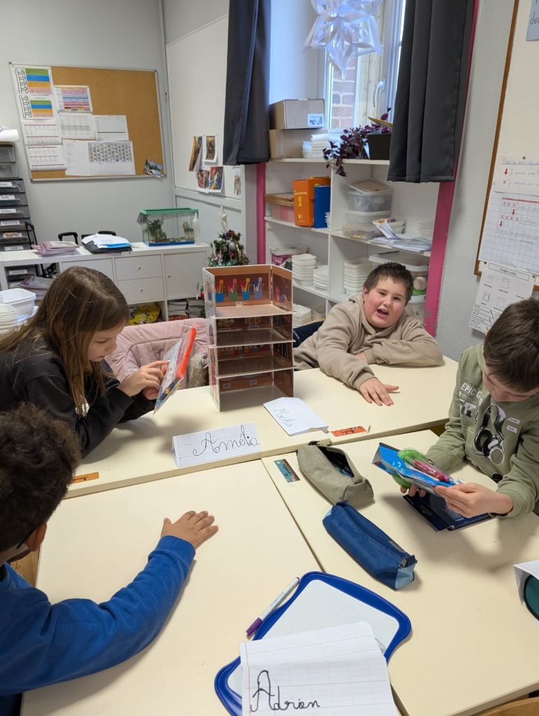 Cet après-midi, les élèves de CE1-CE2 ont reçu une animation de la Feuille d’Erable pour la consommation responsable avec Fabien. Dans leur mini magasin, ils ont pu choisir les fournitures de classe les plus responsables parmi 3 choix. Enfin, ils ont terminé la journée en créant un petit carnet de dessin en réutilisant du matériel qui ne servait plus : feuilles de brouillons, chutes de papiers cartonnés, fil.