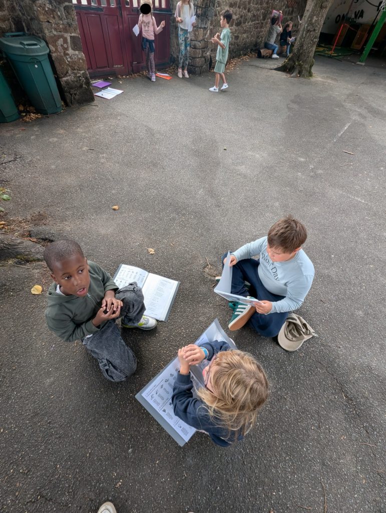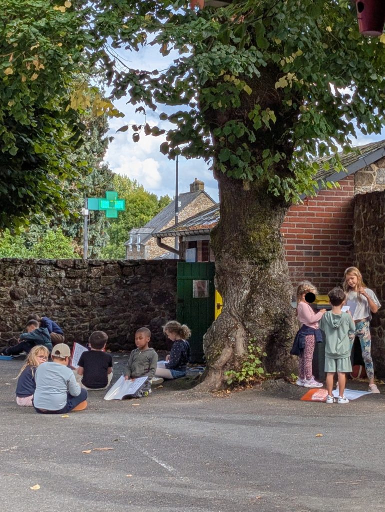 Les élèves de CE1-CE2 ont profité du soleil pour apprendre des poésies avec leurs camarades à l’extérieur de la classe. Une première façon d’interpréter un texte à voix haute devant un petit groupe en ce début d’année.