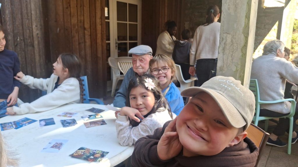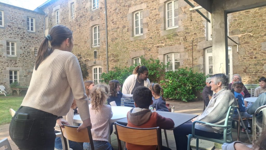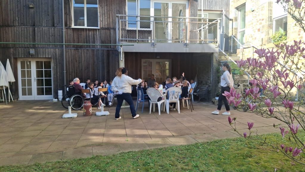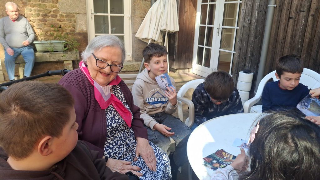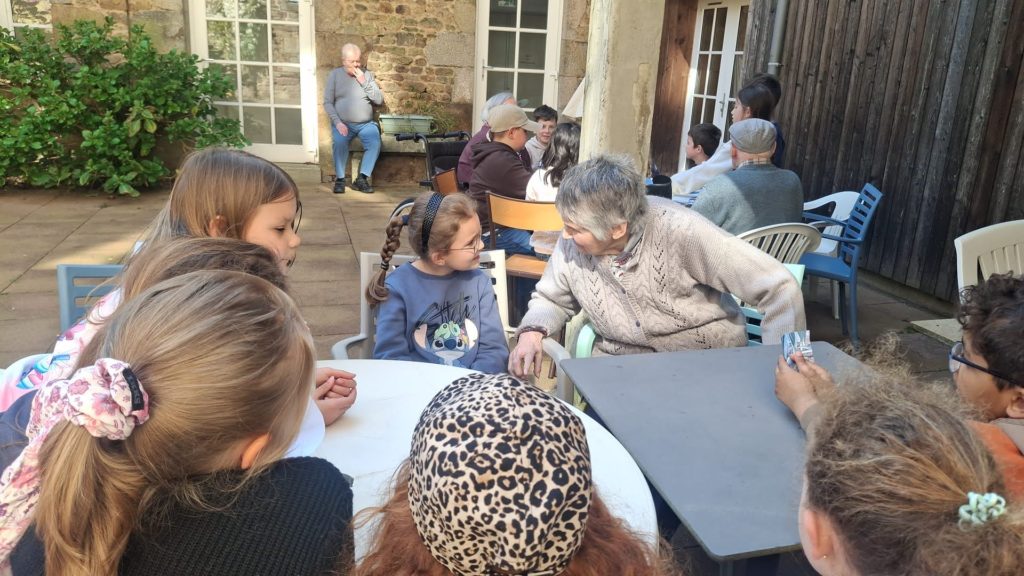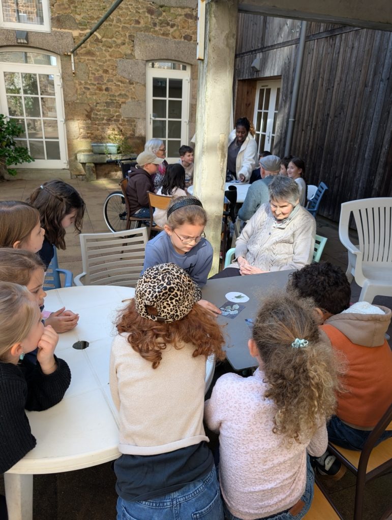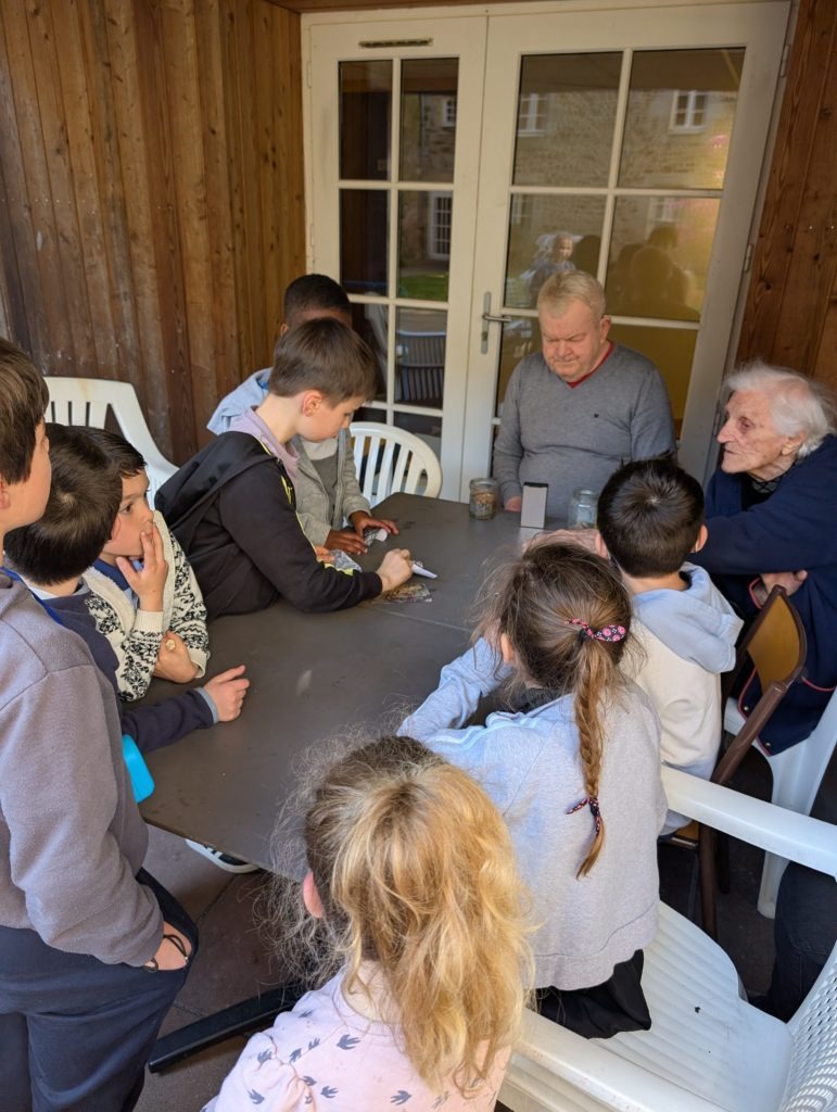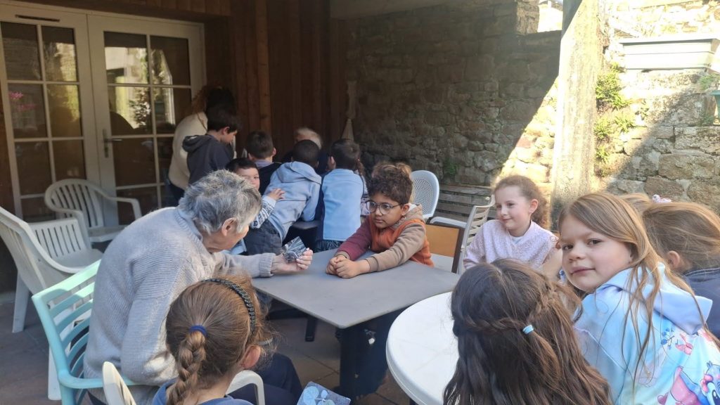 Les enfants de CE1-CE2 sont partis à l’EHPAD de Bécherel jeudi après-midi pour partager un temps de discussion et d’activités sur le jardinage. Nous avons été accueillis par Clara, animatrice à la maison de retraite et quatre résidents.