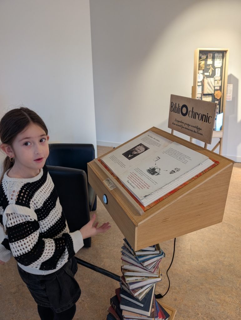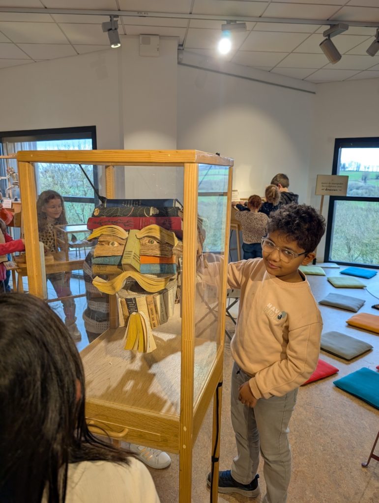 La classe de CE1-CE2 s’est rendue à la maison du livre de Bécherel mardi 10 mars pour voir l’exposition Bibliochronic. Ils ont découvert des livres vivants !