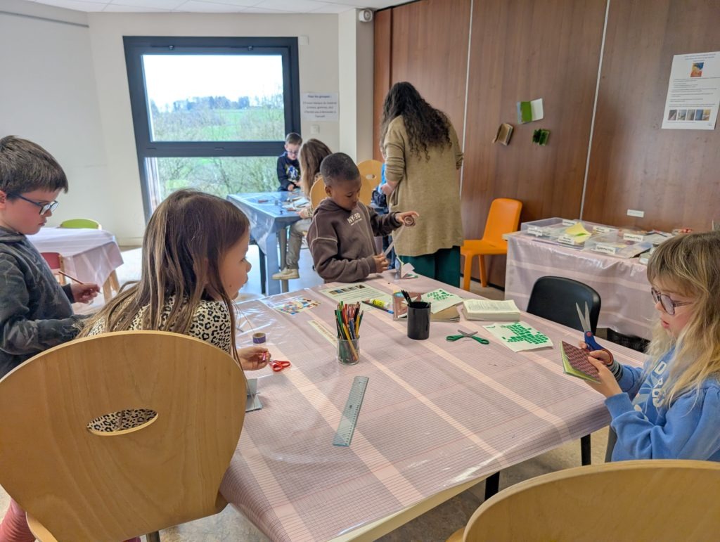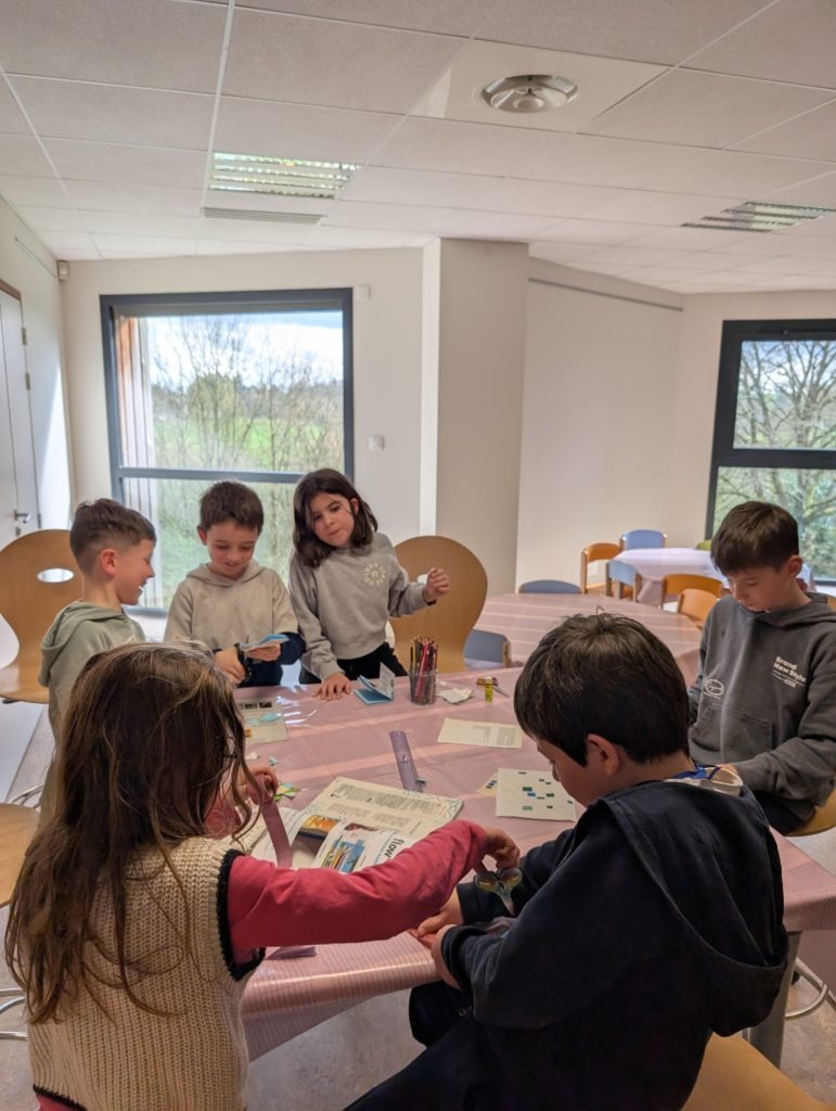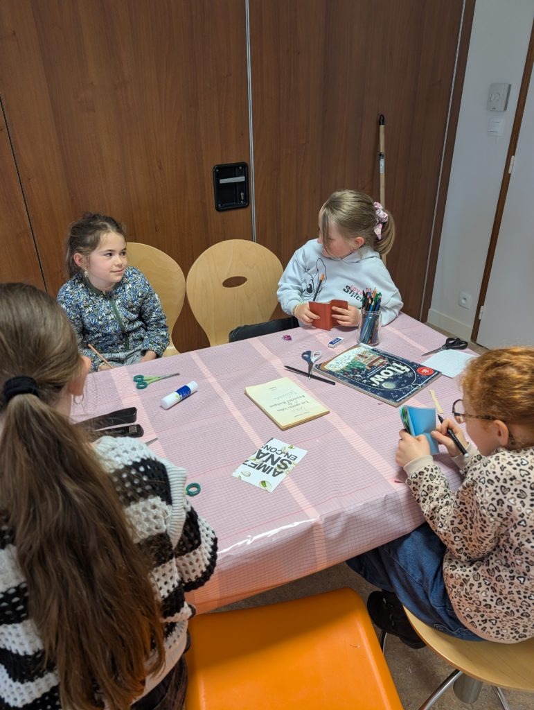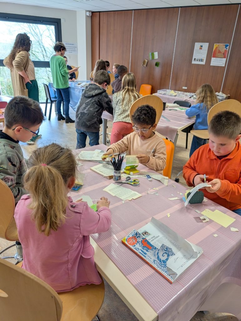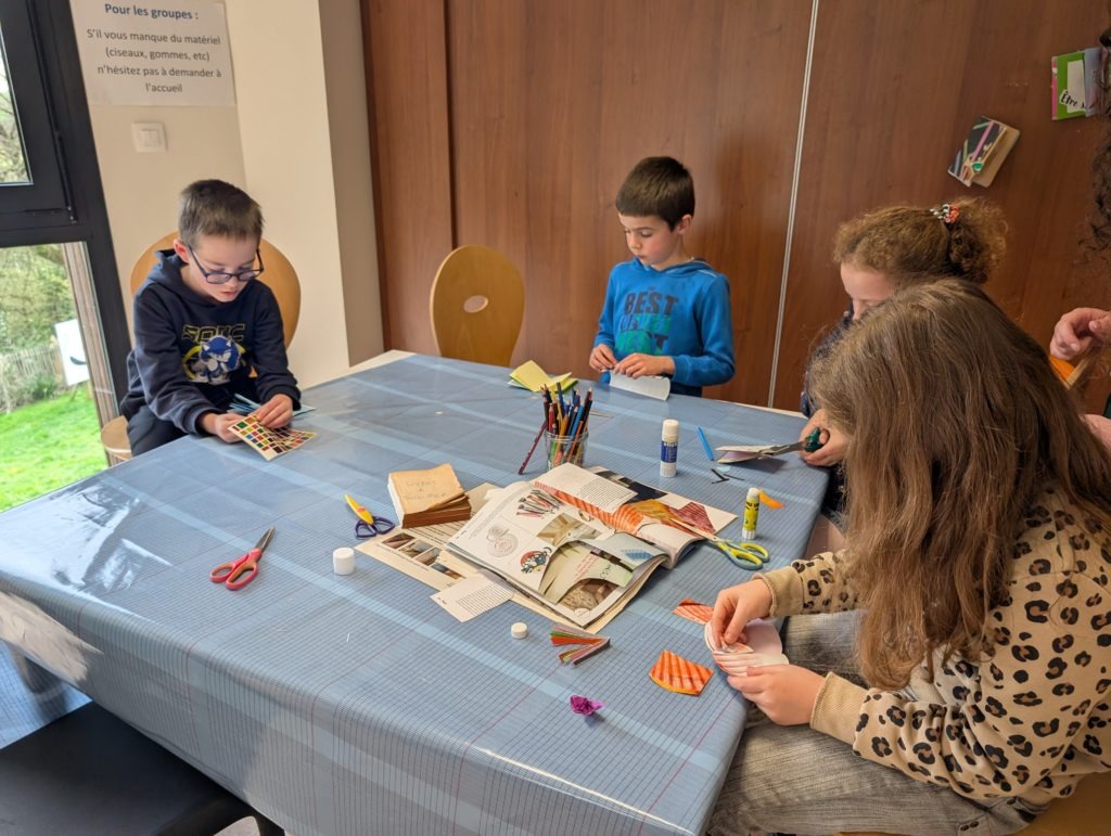 Rozenn a ensuite proposé aux enfants de créer leur propre carnet à partir de feuilles recyclées à partir de vieux livres ou de revues.