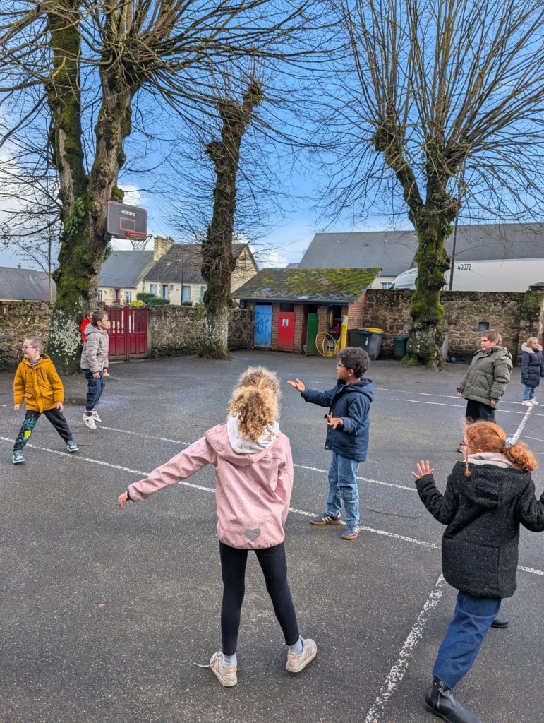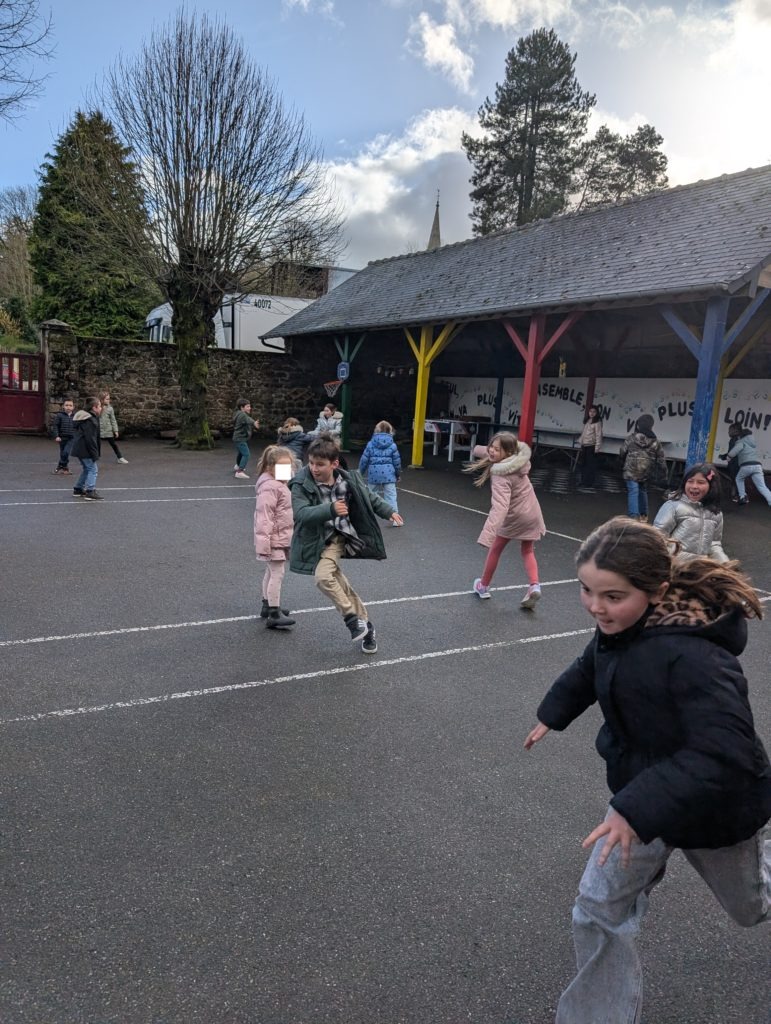 Les enfants de CE1-CE2 ont profité du soleil qui revient petit à petit. Le jeu de l’épervier a permis à toute la classe de jouer ensemble et d’apprendre à faire accepter et vivre des règles de jeu.