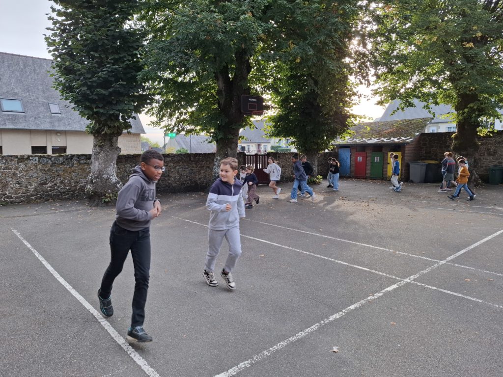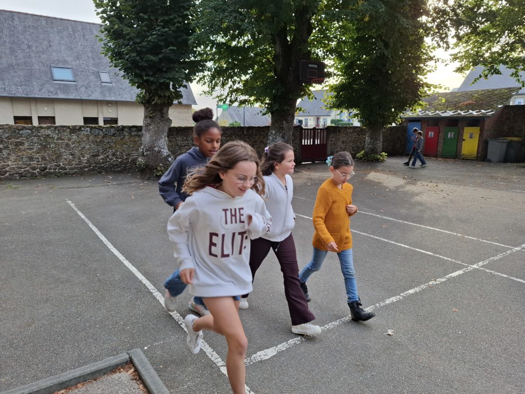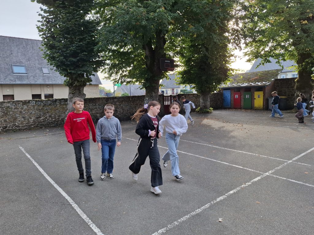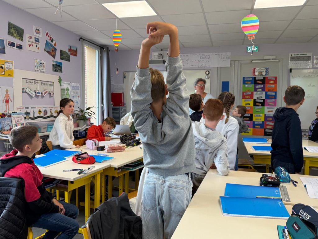 Chaque jour, les élèves de CM coupent leur journée par des petits temps d’étirements ou de courses dehors afin de faire une pause active pour retrouver de l’énergie et la concentration entre les séquences d’apprentissages. Un vrai apprentissage… Parfois, ils vont réviser les tables en courant voire les leçons qui étaient à lire ou apprendre pour le jour.