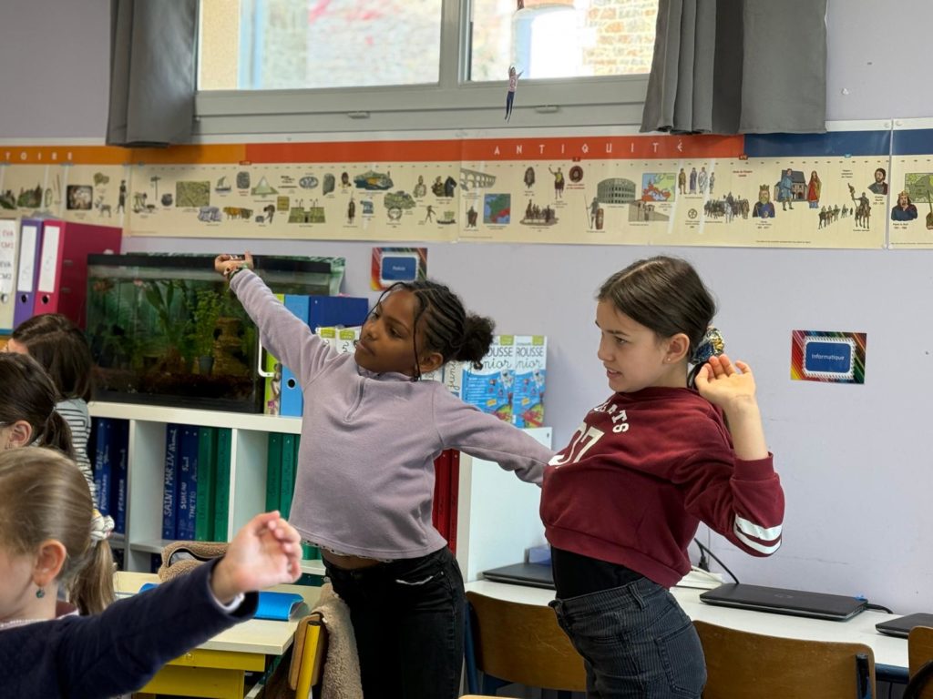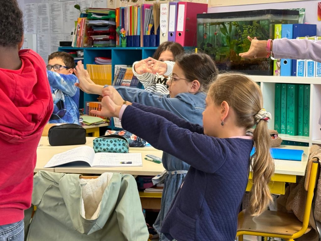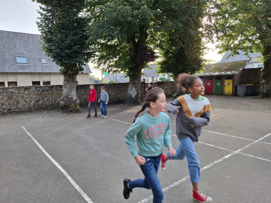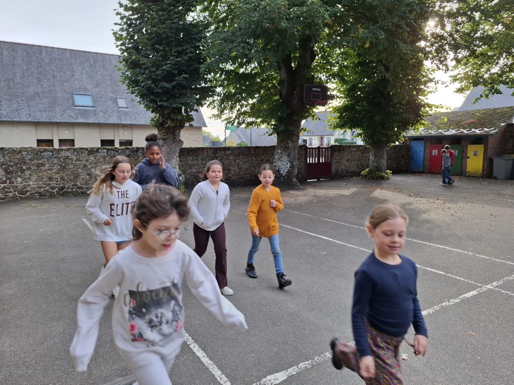 Chaque jour, les élèves de CM coupent leur journée par des petits temps d’étirements ou de courses dehors afin de faire une pause active pour retrouver de l’énergie et la concentration entre les séquences d’apprentissages. Un vrai apprentissage… Parfois, ils vont réviser les tables en courant voire les leçons qui étaient à lire ou apprendre pour le jour.