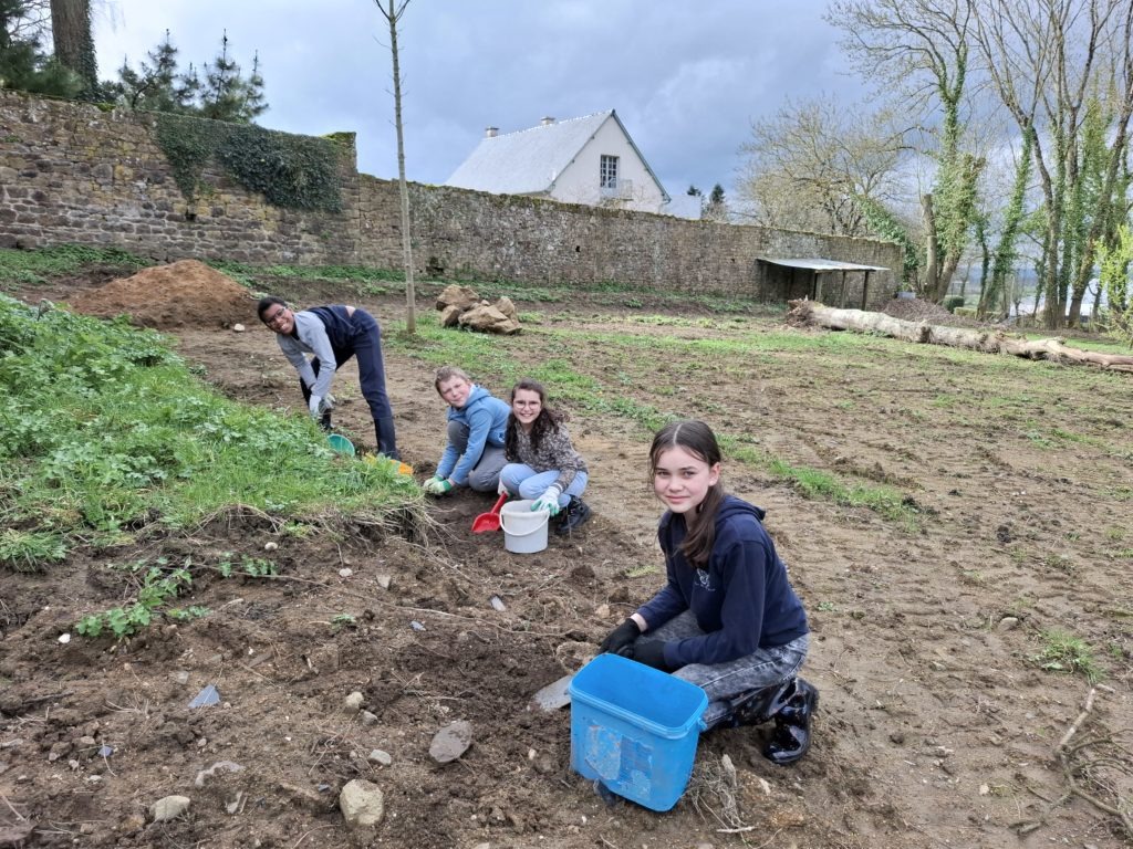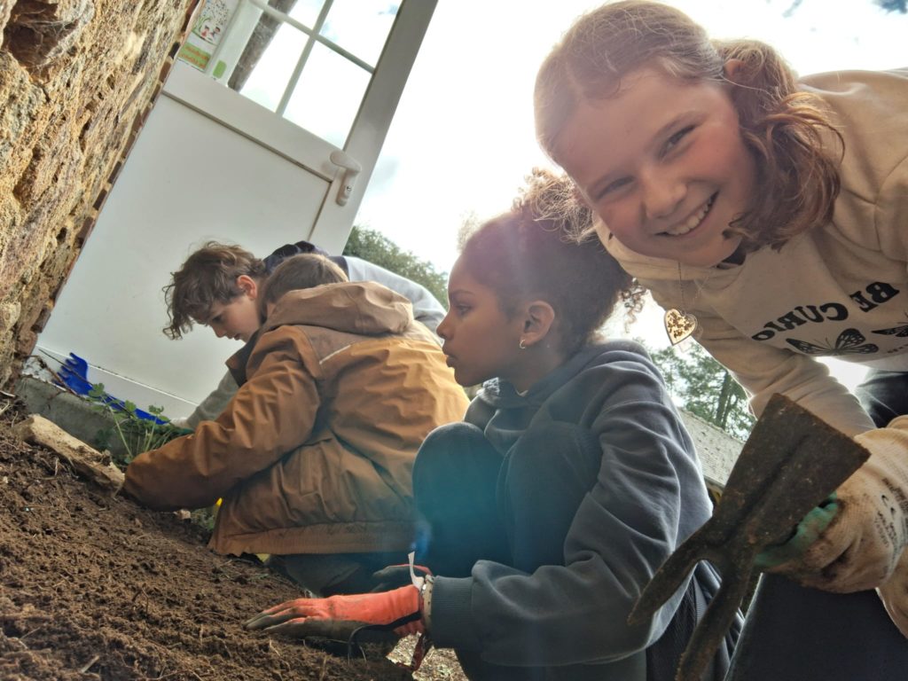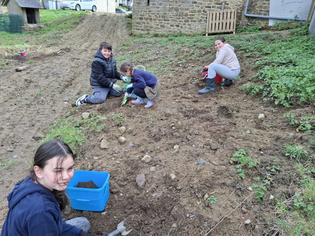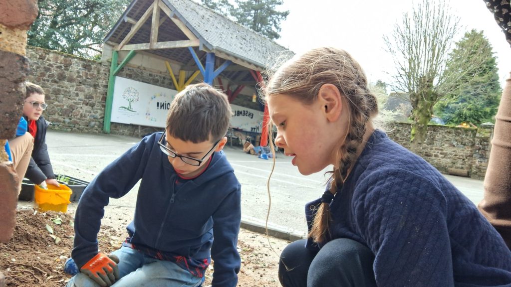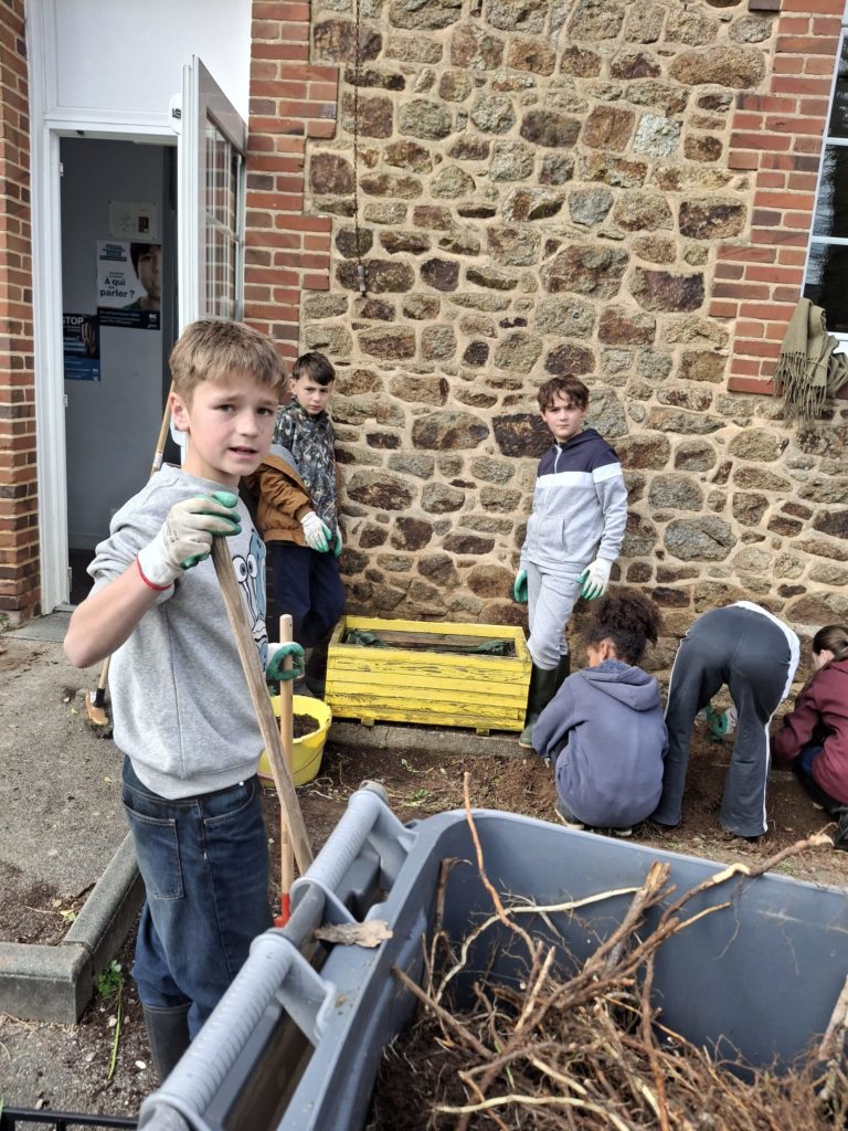 Les élèves de la classe se sont définis un tout petit espace dans la cour de l’école pour embellir la cour de récréation. Après un temps de nettoyage de ce carré vert assez fastidieux, ils ont appris à planter des bulbes de glaïeuls et des graines de fleurs vivaces. Ce fut l’occasion d’ancrer une séance de sciences très concrètement en lien avec des mathématiques et du vocabulaire. Les élèves étaient contents de ce temps rempli de sens. Désormais, ils vont veiller à ce que leur petit espace vert soit bien entretenu pour que les conditions de pousse soient optimales.