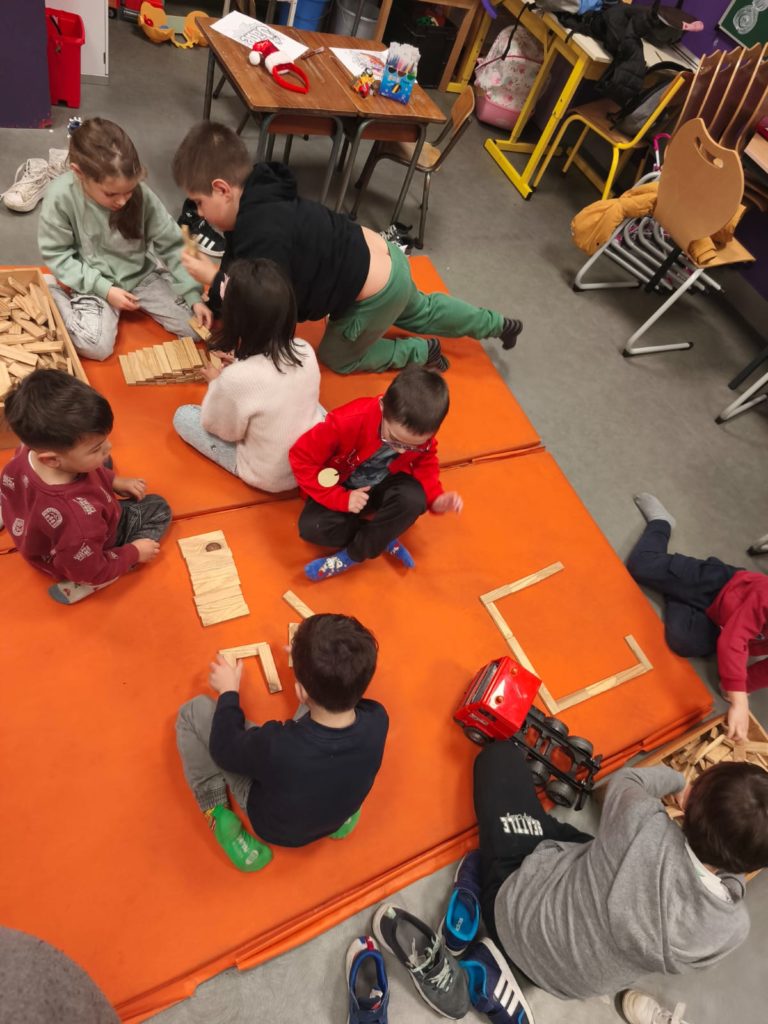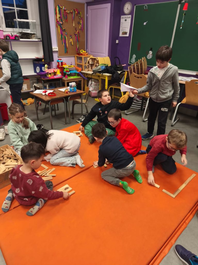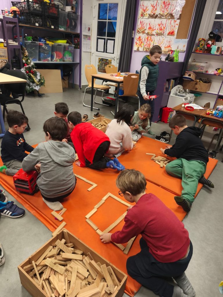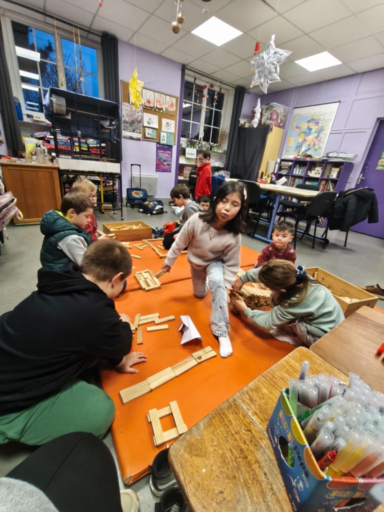 Les plus jeunes ont opté pour la construction avec des kaplas. Cela a permis aussi une peu de coopération entre les enfants, toujours séduits par ces petits morceaux e bois quelques soit l’âge.