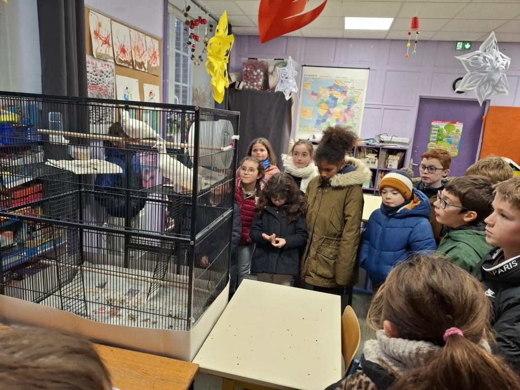Depuis début décembre, nos 2 colombes sont arrivées à Notre Dame de Bécherel pour le plus grand plaisir de nos élèves. Les enfants s’en occupent bien. Elles ont commencé à bien chanter. Les entendre apaisent tout le monde.