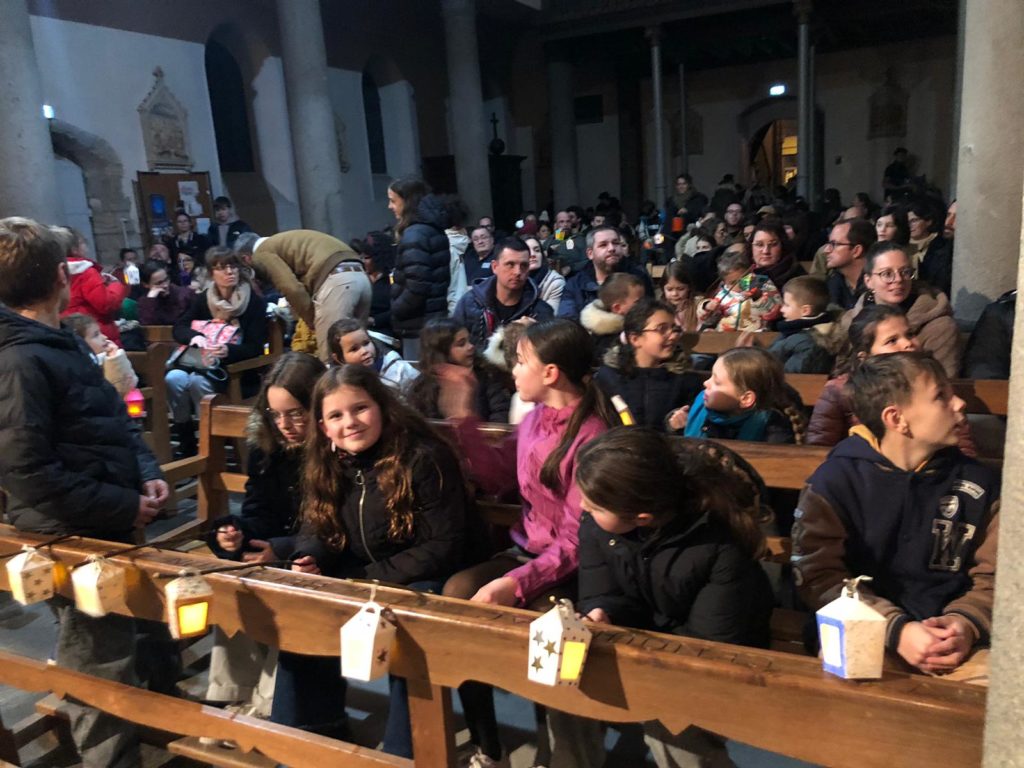 Ce projet en lien avec le projet pastoral de nos établissements a accueilli les familles de l’école, week end précédent la période de l’Avent. Le rendez-vous était fixé à 18h30 à l’église puis enfants et grands sont revenus vers l’école avec les lampions allumés créés pour l’occasion par les enfants. Cette année, Patricia une de nos ASEM, a chanté Minuit Chrétien juste avant le décompte des illuminations, posées par les OGEC la semaine d’avant. Les élèves avaient préparé de bonnes petites gourmandises tandis que l’APEL offrait chocolat chaud et vin chaud. Cette année, un proposition de galettes saucisses par l’APEL et un marché de Noël des ASEM ont apporté une touche encore plus magique.