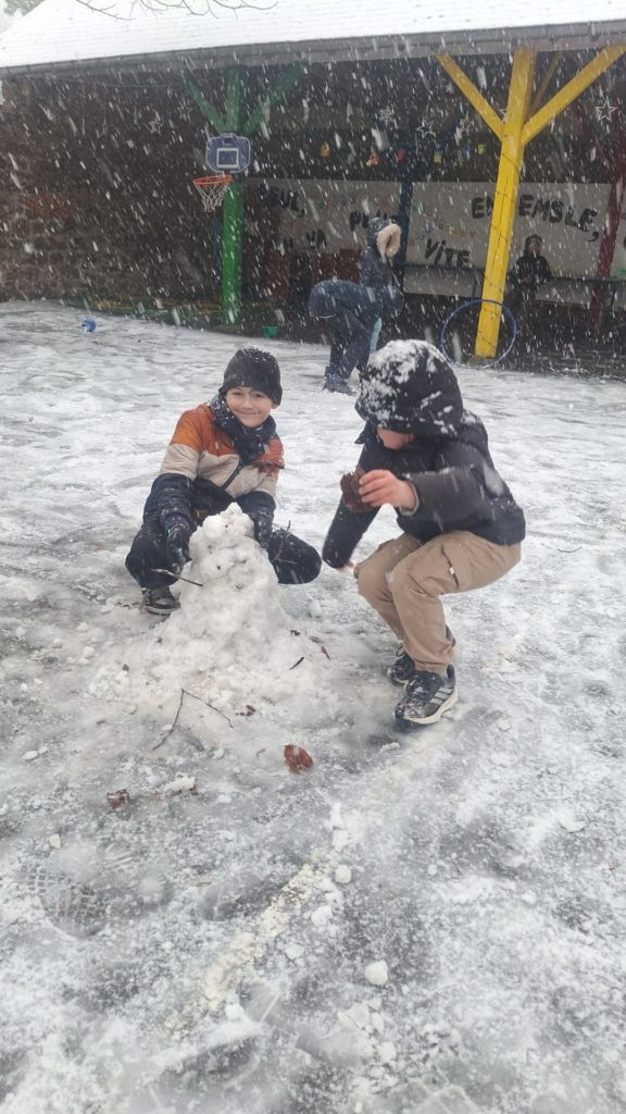 Lundi 5et mardi 6 janvier, la rentrée s’est passée sous un ciel de gros flocons. Ce fut l’occasion de jouer un peu dans l cour pour en profiter à Notre Dame comme à La Sagesse.